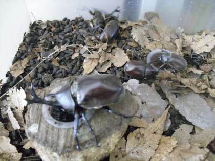 教室前の廊下で飼育していたカブトムシが、たくさん生まれました。たけのこ学級のみんなは、あまり関心を示しませんが、ほかの学年の人たちが、よく観察に来ていました。今年も、天候不順のせいなのか、なかなか成虫の姿が見られずに心配していたのですが、この一週間で、どっと姿を見ることができました。おおくは、藤城エコランドで見つけた幼虫ですが、中には、5年生のお母さんからいただいたものもいます。卵が、何個か採取できれば、自然に解放してやろうと思っています。