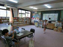 今日の午前中は,図書館開館日でした。支援員の先生に本を選ぶ相談に乗ってもらったり,借りた本を交換したり子どもたちがやってきました。おうちの人といっしょに来たり,児童館からやってくる子どもたちもいました。休み中もしっかり読書してください。
