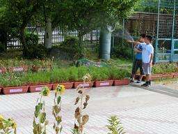 学校閉鎖日が終了し,23日の授業再開に向けて様々な準備を進めています。職員室では,教材研究や運動会に向けての打ち合わせなど各学年で取り組んでいます。昇降口のペンキ塗りも進み,園芸や飼育委員会の当番さんも,暑い中で頑張ってくれています。