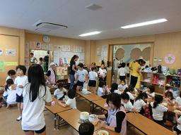 小学校の授業再開の前日,藤城児童館では夏祭りが開かれました。小学校の高学年の子どもたちもスタッフとしてお手伝い。いつもお世話になっている藤城地域の方々もスタッフとして暑い中参加しておられました。200人を超える子どもたちで児童館は大賑わいです。