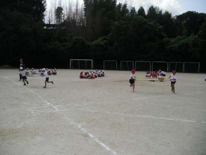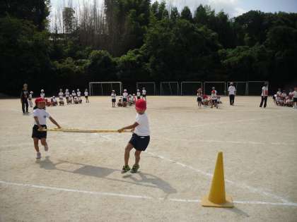 今日は初めて運動場で、巻物運びリレーの練習をしました。先週1度は体育館で練習をしていたのものの、運動場は初めてだったのです。でも私達の心配をよそに、子ども達は二人組でしっかり並んで、巻物はまだのっていない台を一生懸命に運んでいました。次回はいよいよ巻物をのせて、本番気分でぴかぴか忍者をめざします。