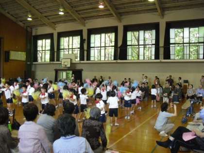 10月6日の日曜日に、体育館で「シルバーの集い」がありました。地域のお年寄りの方々が集まってこられました。2生は、みなさんに喜んでもらうためにダンスを披露しました。運動会でも踊ったダンスなので、みんな自信満々で笑顔で踊りました。終わった後には,ごほうびをいただいて大喜びの2年生でした。