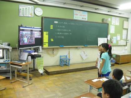 梅小路小学校とテレビ会議