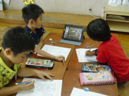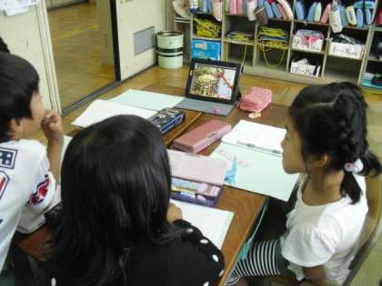 2年生は、11月のなかよしまつりに向けて、準備真っ最中です。今日は、前回の「花がさデザイナー」に続いて「みこしデザイナー」になりました。花笠見学に行ったときにみこしの写真もみんなで撮っていたので、それをiPadで見ながら参考にして、オリジナルのみこしのデザインを考えました。どんどんおまつりのイメージがふくらんできました!