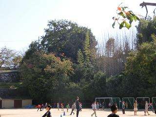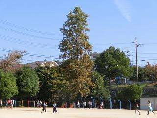 今週はやっと秋の青空が戻ってきました。運動場のハンテンボクは黄色に,ヤマザクラは赤に,うっすらと色づいてきました。