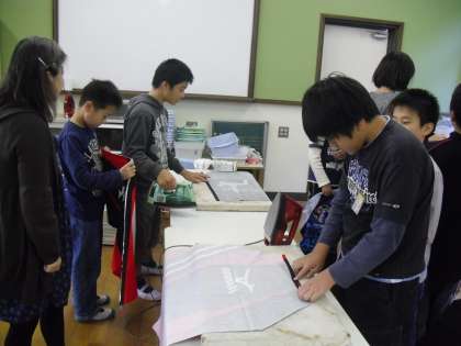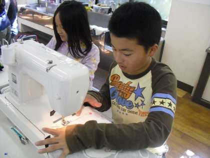 家庭科では,エプロンの製作に取り組んでいます。アイロンをあてたり,ミシンでぬったり・・・子どもたちは友達同士教え合いながら,手際よく進めています。今日はPTAの保護者の方もお手伝いしてくださいました。あとはポケットを工夫してつければ完成です。