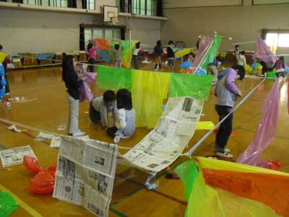 テントや家やプール。体育館がとってもカラフルになりました。