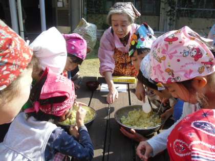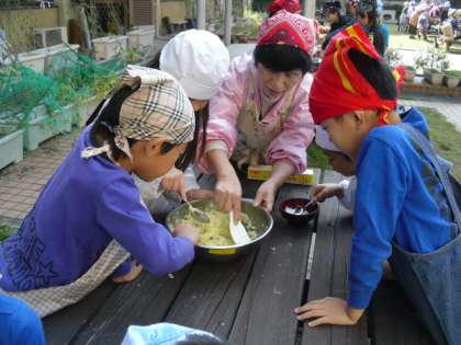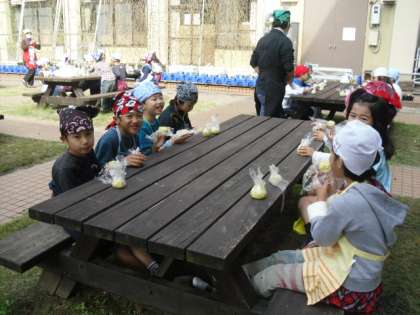 先週、2年生の畑で収穫したさつまいもと、女性会のみなさんの協力でくださったさつまいもで、さつまいもパーティをしました。女性会のみなさんが、朝早くからおいもの皮をむいて、ゆでて、準備してくださっていたおかげでスムーズにパーティがすすみました。ゆでたさつまいもをつぶして、ラップにつつんで「茶きんしぼり」を作りました。みんなでいただきますをして、じっくり味わいました。ほんのり甘く、子たちの顔はほっこりニコニコ。秋の味を存分に味わえた幸せな時間でした。