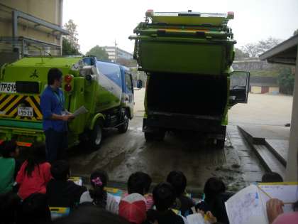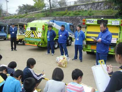 ゴミ収集車(パッカー車)の仕組みなどについて学習しました。