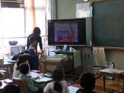 1年生の国語「じどうしゃくらべ」の授業研究会を行いました。事前研究の反省を生かして,はしご車の仕事をよりよく実感させるために,動画を見ることから始めました。気付いたことを拡大提示しながらみんなに知らせ,つくりとしごとについてまとめました。