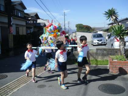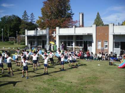 1年生のお店に行ったあとは、お祭りの練り歩き第2弾です。Bグループは付属特別支援学校に向かいました。天候に恵まれ、温かい日差しの中、芝生広場でダンスをしました。付属のお友達は、ダンス中は手拍子をして「お〜!」などと感嘆の声もあげながら楽しそうに見てくれました。これで、春の校区探検で見学させてもらったお礼ができました。2年生みんな清々しい顔をしていました。