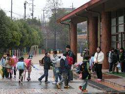 今日はマラソン大会の予定でしたが,あいにくの雨空です。登校してきた子どもたちは,「おはようございます」と迎えてくれる学生ボランティアの先生に「走りたかったよ・・」とか「今日はしんどいから延びてよかった・・」とか色々と話しかけています。