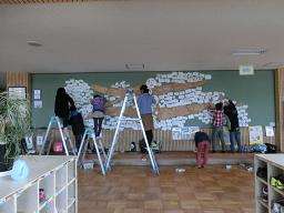 昇降口では情報委員会が「なかまの木」の模様替えに取り組んでいます。1月は,雪玉を積もらせたなかまの木に変身です。今夜は本当の雪が降るかもしれません。