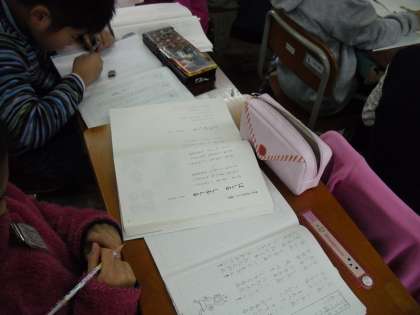 国語の学習で「詩を楽しもう」をしました。「はしるはしる・じゃがいも・雪」の3つの詩の中から,自分がいいなあ・おもしろいなあ等と感じた詩を選び,その詩からイメージできる絵を描いたり,その詩を一言で表すと・・・・。「○○の詩」という言葉も考えました。「言葉がおもしろい詩」「冬を感じさせる詩」「様子を想像したくなる詩」等,たくさんできました。