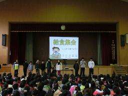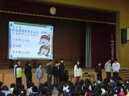 給食感謝週間の取組の一つとして,体育館で給食集会が開かれました。給食に関する食のクイズやインタビューしてきた調理員さんのおもいをプレゼンで発表しました。すこやかに体が成長していくように,今まで以上にしっかりと味わっておいしく給食をいただきます。
