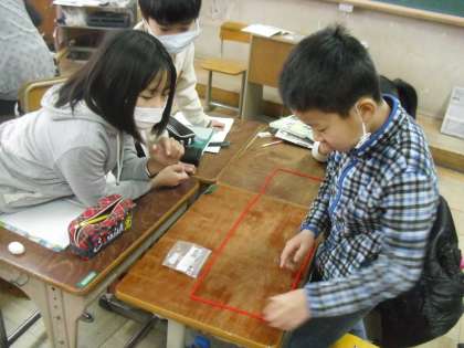 算数では「変わり方」の学習が始まりました。今日は,18本の棒をならべて長方形をつくり,その結果を表にまとめていきました。グループで協力しながら棒を並べ替え,どんな長方形ができるか一生懸命さがすことができました。表の書き方も学習したので,これからも,その表を使って学習を進めていきたいと思います。
