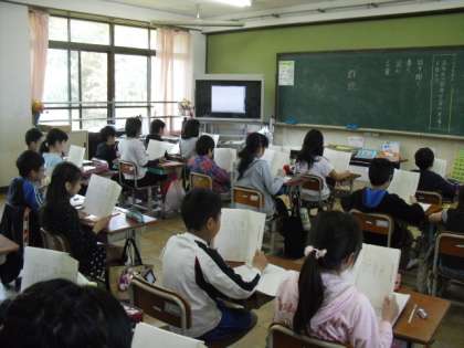 国語の授業での子どもたちの様子です。教科書を読むときの姿勢や,発表するときの挙手の仕方・話し方等をみんなで確かめ合いながら学習を進めていきました。