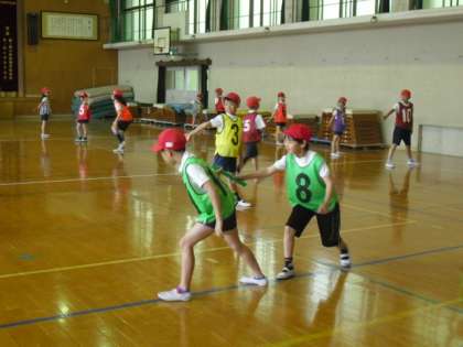 今日から、体育は「リレー」に入りました。リレーの勝敗は、「バトンの受け渡しできまるといってもいいぐらいなんだよ」ということで、早速バトンパスの練習をしました。右手でもらって左手に持ち替えて次の走者に渡すというやり方は、頭ではわかっていても、いざ動きながらやってみると、なかなかむずかしい様子でした。でも「先生リードをしてもいいですか。」という声もあがるくらい、何回も何回も繰り返し練習をがんばりました。いよいよ来週からは、実際に走っていこうと思います。