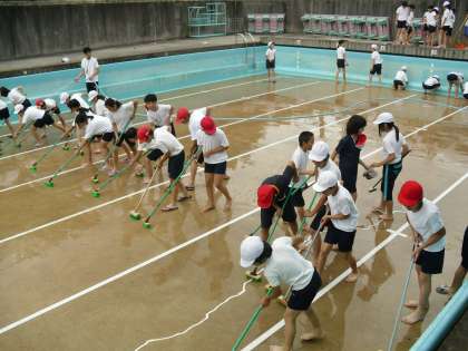 みんなががんばったおかげで,プールはピカピカです。