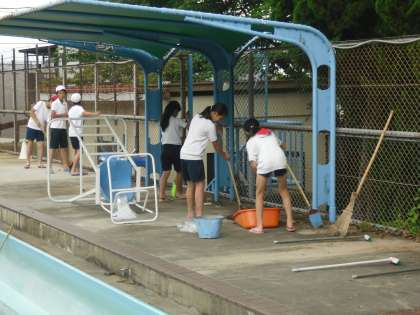もうすぐ始まる水泳学習に向けて,プール清掃をしました。
