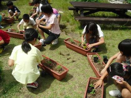 藤城の町をよりすてきな町にするために,学校運営協議会の方々に教えて頂いて,マリーゴールドの花を植えました。一人一鉢ずつ植えていた子どもたちは,とても楽しそうでした。