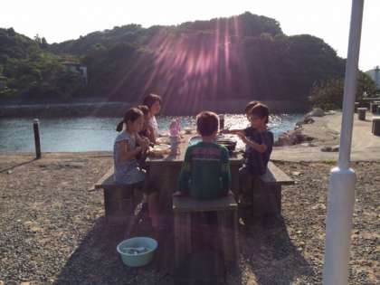 夕日と海を眺めながら、おいしくいただきました。