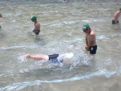 今日は気温が低くて少し肌寒い感じがしましたが,寒さに負けずに初泳ぎをしました。