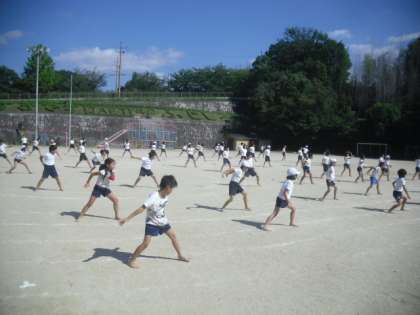 来週にせまった運動会に向けて,暑さに負けずにソーラン節の練習に励んでいます。