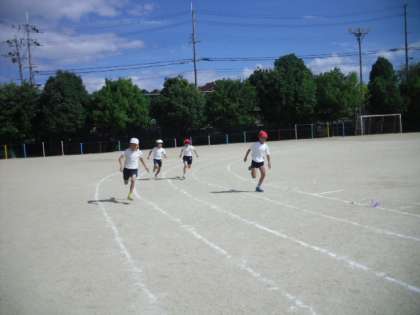 今日は、初めて運動場で自分のコースを走ってみました。リレーの時とはちがい、途中からインコースに入らずに、最後まで自分のコースを走り通す練習でした。ゴールで見ているとぎりぎりの接戦がたくさん見られました。本番まで勝負はわかりません。最後まであきらめずに、前だけを見て走り抜けましょう。