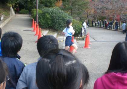 5年生も今、学年全体で大文字駅伝を目指して毎朝練習しています。一年後にむけてどんな姿を目指したらいいのか、それを見るために6年生の応援に行きました。