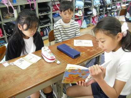 実は案内状を届けてもらった時に「本を読んでもらうのは今年が最後やな。」とつぶやいた子がいました。そんなわけでみんな特別な思いで本を読んでもらいました。そばで聞いていると、5年生の子ども達も、自分の読み聞かせの相手を思い浮かべながら本を選んでくれたことが伝わってきてうれしかったです。6時館目にお礼の手紙を書きました。
