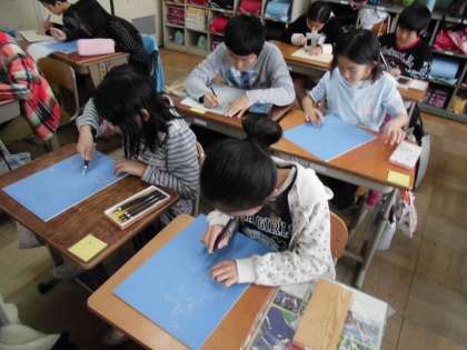 図工で版画の学習を進めています。今年は,運動会で踊った「ソーラン節」をテーマにした版画を作成中です。完成を楽しみにしておいて下さい。
