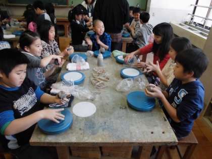 新年がスタートし,子どもたちも意欲的に学習に取り組んでいます。今日は,清水焼の陶芸家の先生をお迎えした陶芸教室がありました。普段の図工の学習では使うことのない手回しろくろを使いながら粘土をこね,器やコップなどを作る体験をしました。さすがは子どもたち。あっというまに思いおもいの作品を作り上げていました。出来上がった作品は,2月の造形展で展示する予定です。お楽しみに。