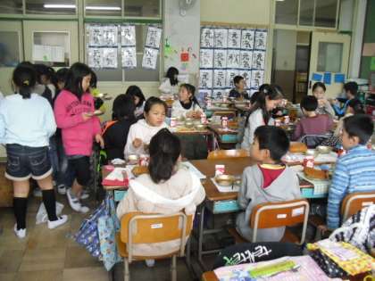 27日に2年生との交流給食がありました。交流読書でも一度顔合わせをしているので,お互いに楽しみながら給食を食べることができているようでした。来週にある大縄集会にも交流学年で参加しますので,2学年上のお兄ちゃん,お姉ちゃんとして2年生を支えながらがんばってほしいと思います。