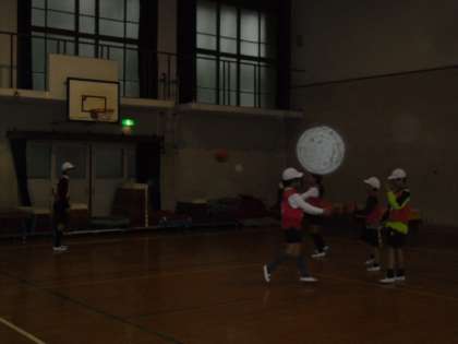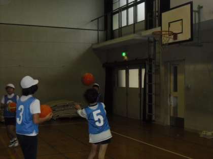 ドリブルをするのが今回が初めてで,戸惑いを感じていた子どもたちですが,始めてみるとなんのその。「バスケットボールって,ずっと走ってないといけないんだね」「疲れるけど,楽しい」「やるからには勝ちたい」など,チームごとに燃えています。残り3時間。みんなで楽しく学習していきましょう。