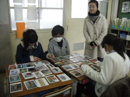 図工の学習で,様々なジャンルの絵を観て感じたことをもとに,読み札をつくり,カルタ大会をしました。