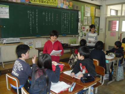 話し方の工夫を考えるために,自分の声をデジタルカメラのボイス機能に入れ,工夫を確認しました。自分の声を客観的に聞くことで,「相手が聞きやすい話し方」を考え直していました。そのあと,グループでミニ発表会をしました。