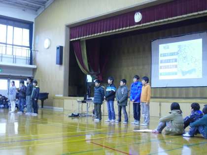 今日,かめのこタイムの発表を全学年の前で発表しました。