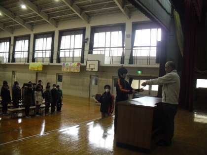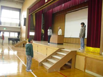 卒業式で証書を受け取る練習をしました。