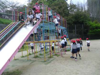 特に,総合遊具は1年生の時は2階までしか行けなかったので,3階まで登って滑り台に行けることがうれしいようです。