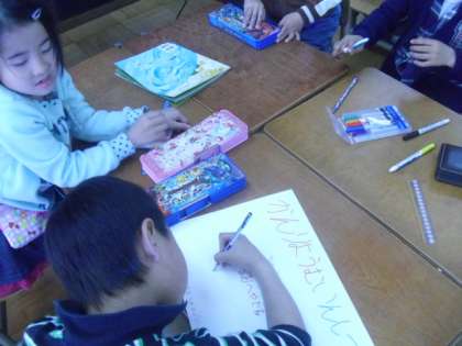 4月30日の学校探検にむけて、着々と準備が進んでいます。今日の生活の時間はポスター作りをしました。「1年生にわかりやすいように、ひらがなで書くよ!」「部屋の名前は大きく書くよ!」と丁寧に描いていました。グループで仲良く協力して、見易くて分かりやすいポスターを作ることが出来ました!