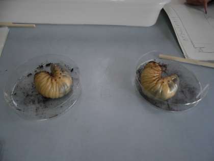続いてカブトムシの幼虫の観察もしました。みんな興味津々で見入っていました。観察後,欲しい人は幼虫ももらうことができ,好きな子どもたちは大喜びでした。
