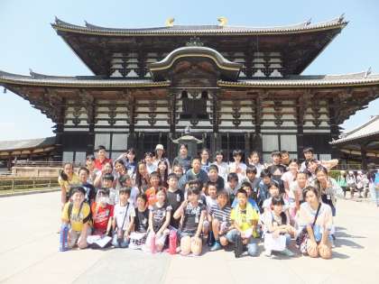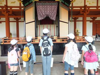 次に奈良公園へ。大仏の大きさに驚く子どもたち。なぜあのような大きさにしたのかを考えることができました。