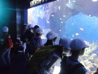 お弁当タイムの後は、クラス毎に水族館を1周して楽しみました。クラゲやたこ、ペンギンなどを食い入るように見ていました。