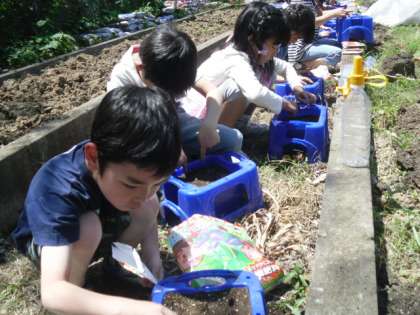一年生での生活の学習(あさがおとチューリップ)を思い出したのか、みんな慣れた手つきで土を触っていました。