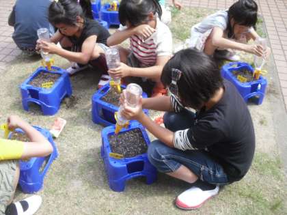 そのあとは、中庭に移動して、種まきの作業をしました。