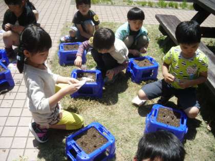 今日は生活科の時間にあさがおの種を植えました。土や肥料を植木鉢に入れるところから全部自分でしました。たねを植えたら,第一号目の観察日記を書きました。「はやく大きくなってね」「きれいなおはなをさかせてね」などのメッセージも添えました。いつごろ芽が出てくるのかな。毎日水やりを頑張ろうね!!