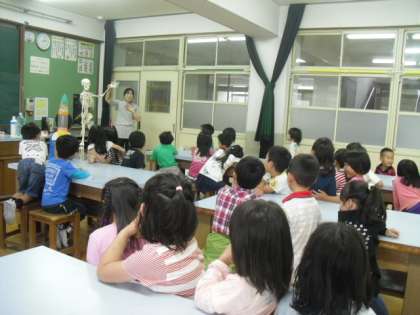 生活科では,2年生に連れて行ってもらった学校たんけんを思い出しながらさらに学校に詳しくなるために理科室へ見学に行きました。理科室の中には,がいこつの模型やビーカー,顕微鏡など普段の学校生活の中ではなかなか見られないものをたくさん見ることができました。次はどんな部屋へ行くのかな楽しみですね。