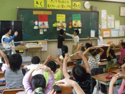 1回目の今日は,「三色の食べ物について知ろう」という内容で,どのような食材が赤・黄・緑の色に分けられるかを友達と相談し,発表しました。
