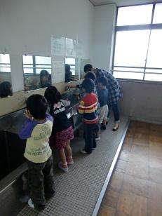 初めての遠足が延期になって、少し残念な1年生。でも、お弁当はおいしかったです!もちろん食後の歯みがきもしっかりとしました。